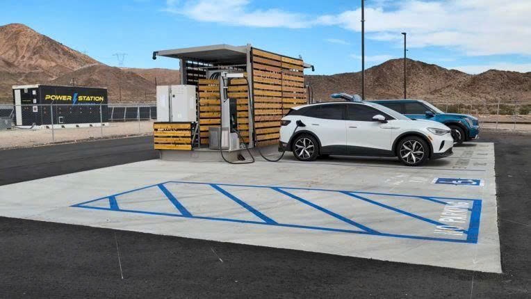 Trạm sạc do PowerStation Charging phát triển vừa đi vào hoạt động tại lối ra Rasor Road trên tuyến cao tốc liên bang I-15, thuộc khu vực Baker, bang California. Điểm khác biệt cốt lõi của cơ sở này nằm ở khả năng hoạt động 24/7 mà không cần kết nối với lưới điện truyền thống. Nguồn điện năng được khai thác từ hệ thống 1.080 tấm pin mặt trời, đạt công suất tối đa 640kW. Toàn bộ lượng điện thu được sẽ nạp vào bộ pin lưu trữ có dung lượng lên đến 3,4MWh, đảm bảo duy trì hoạt động ổn định cho trạm ngay cả khi điều kiện thời tiết không có ánh nắng.