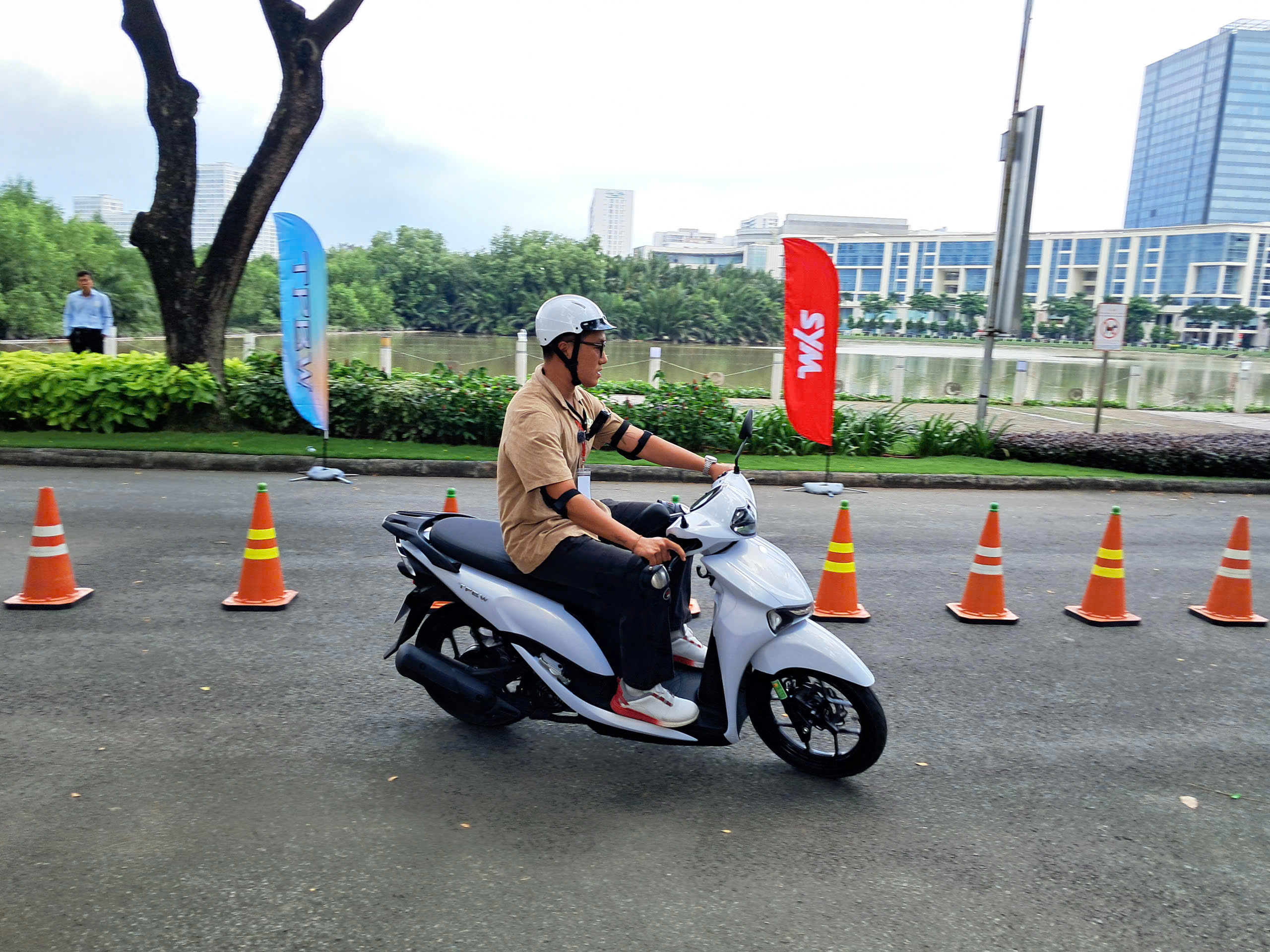 Trên đường phố trơn ướt dưới mưa lớn, xe vẫn phanh an toàn nhờ công nghệ phanh kết hợp CBS đồng thời giảm tốc trên cả hai bánh xe, ngăn chặn hiện tượng trượt một bánh gây ngã xe. Điều thú vị, tuy phuộc sau kiểu giảm xóc đơn lò xo trụ và ti phuộc dài hơn hẳn so với các mẫu xe tay ga chung phân khúc nhưng khi chạy sa hình zíc zắc, ôm cua gắt, quay đầu xe… thì thân xe vẫn không bị lực kéo ngang, tay lái không cho cảm nhận lỏng lẻo.