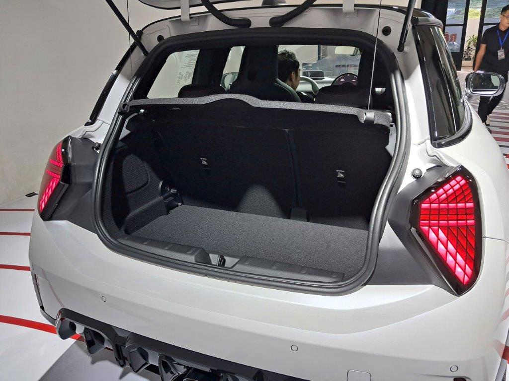 So với JCW 3-cửa đời trước, xe mới có chiều dài cơ sở 2.495mm dài hơn một chút, nhưng không hơn 100mm so với hatchback phổ biến nên không gian nội thất có phần thu hẹp. Cụ thể là hàng ghế sau chỉ dành cho hai người lớn ngồi, kèm phần đệm hình chiếc giày giữa hai ghế làm điểm tựa cho người ngồi giảm lắc lư. Không có cửa gió, cổng sạc cho hàng ghế sau.