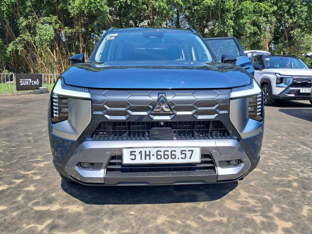 Đầu xe nổi bật với ngôn ngữ thiết kế đặc trưng Dynamic Shield. Lưới tản nhiệt thiết kế đa tầng họa tiết tổ ong được đặt dưới lớp acrylic trong suốt, tích hợp liền mạch với hai bên cản trước tạo nên hiệu ứng thị giác ấn tượng và diện mạo hiện đại. Cụm đèn LED hình chữ T đặc trưng vừa tạo điểm nhấn vừa tăng khả năng nhận diện cho xe. Khoảng sáng gầm xe cao 214 mm (cao hàng đầu trong phân khúc), mâm xe 18inch và góc tới – góc thoát tối ưu, giúp xe dễ dàng vượt qua các chướng ngại vật.