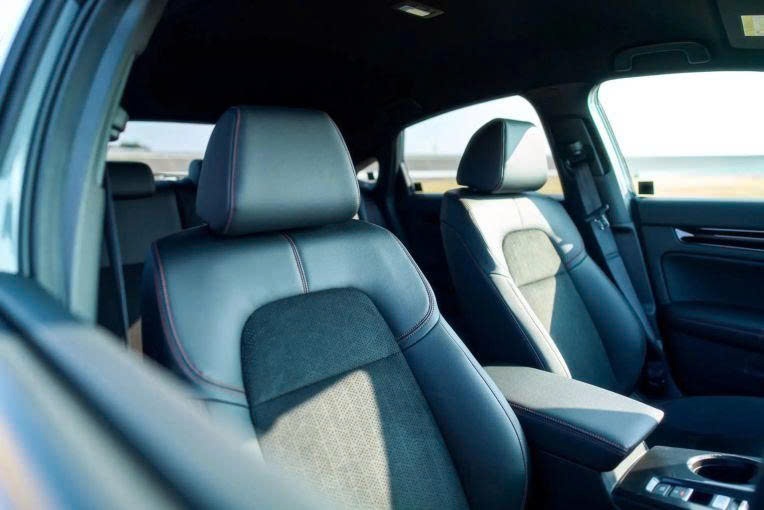 Khoang cabin của phiên bản này duy trì phong cách tối giản với tông màu đen chủ đạo, được tạo điểm nhấn bằng các đường chỉ khâu màu đỏ trên vô lăng và ghế da.