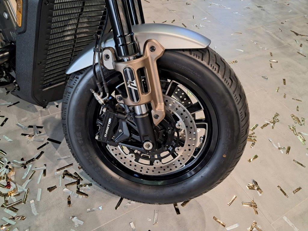 Yên xe cao 734mm phù hợp cho các tay lái có chiều cao từ 1m60. Khoảng sáng gầm xe 160mm hạn chế cạ gầm trên đường lồi lõm. Phuộc trước dạng giảm xóc đôi, hành trình ngược Upside-down. Nhún sau dạng giảm xóc đơn đặt bên hông. Cỡ lốp trước 130/90R16 và sau 150/80R16. Màn hình ODO TFT hiển thị đầy đủ thông số, giảm chói nắng.