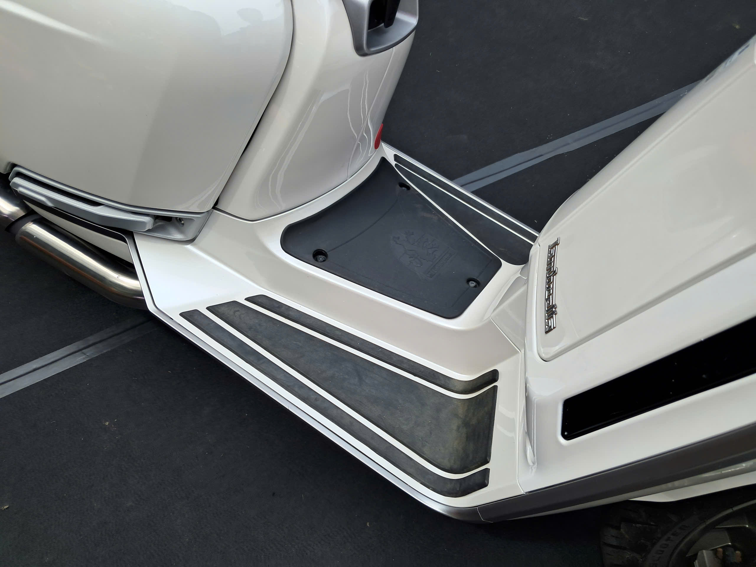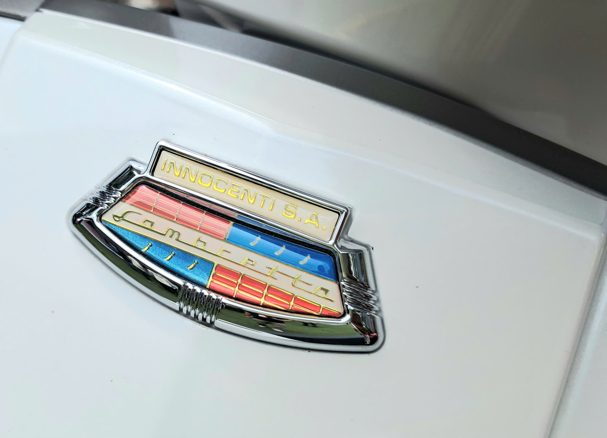 Một số chi tiết tạo điểm nhấn thương hiệu như logo chính hãng kiểu cổ điển gắn chính giữa yếm chắn gió, kèm tên người sáng lập thương hiệu – Ferdinando Innocenti – vào năm 1947 tại thành phố Milan nước Ý, thanh mạ crôm rất dài chạy dọc viền hai bên hông xe, huy hiệu sư tử Rampant Lion phía trước xe, mặt ca lăng mini như trên xe hơi.