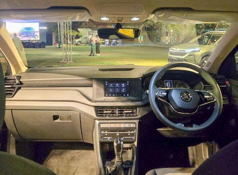 Tiến vào bên trong cabin, không gian của Kushaq Classic+ thể hiện rõ tính thực dụng của một phiên bản tối ưu chi phí. Xe được trang bị màn hình cảm ứng kích thước nhỏ. Tuy nhiên, người lái vẫn có thể thao tác thuận tiện qua vô-lăng đa chức năng tích hợp phím điều khiển âm thanh.
