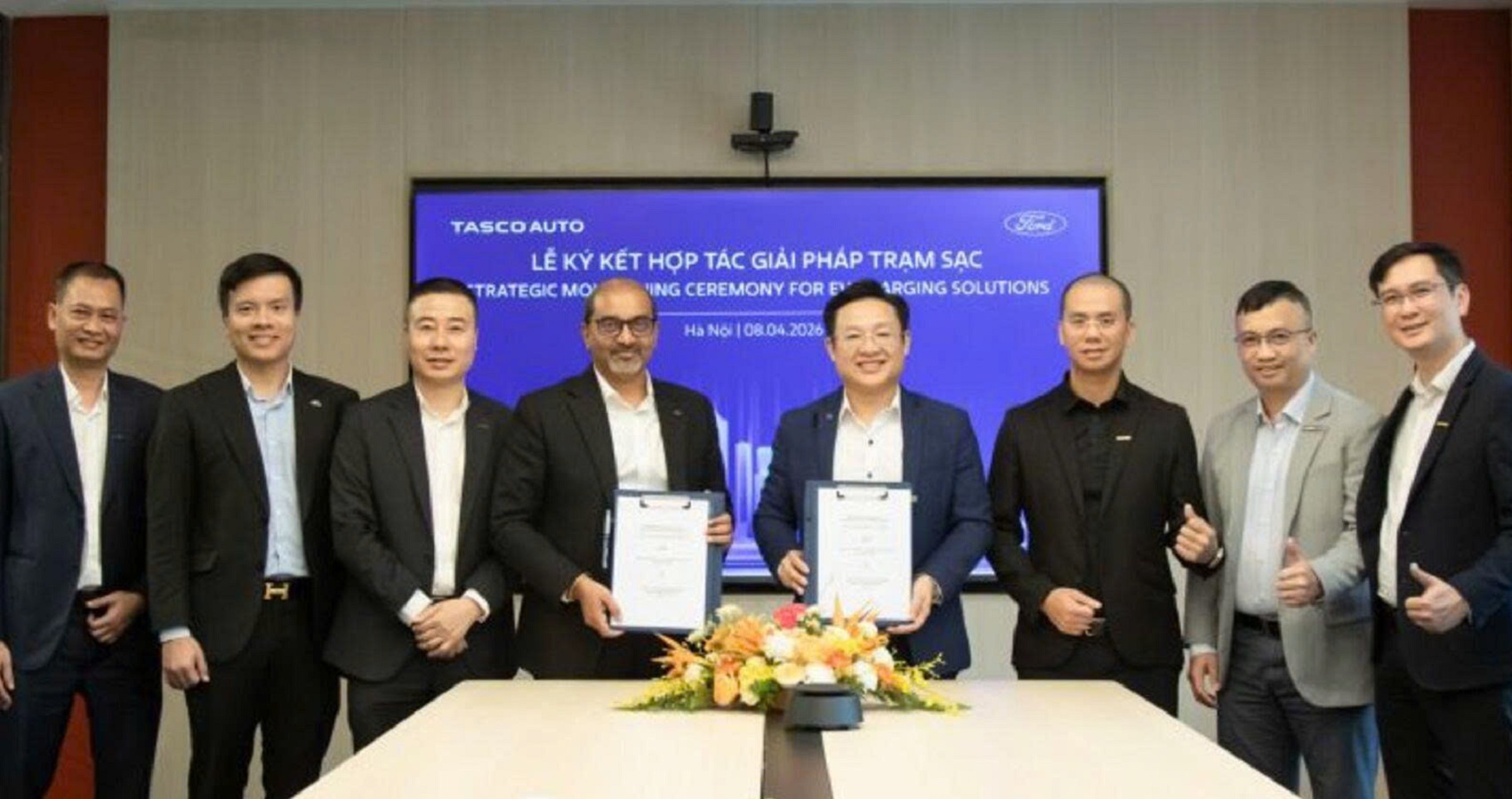 Công ty Cổ phần Tasco Auto (Tasco Auto) và Công ty TNHH Ford Việt Nam (Ford Việt Nam) đã chính thức ký kết Biên bản ghi nhớ (MOU) thiết lập quan hệ đối tác chiến lược trong việc chia sẻ hạ tầng sạc xe điện, gia tăng tiện ích cho người dùng và cùng thúc đẩy lộ trình chuyển dịch xanh của thị trường ô tô Việt Nam.