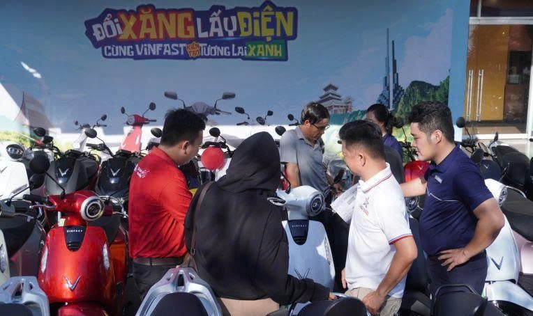 “Chiếc xe tay ga cũ 11 năm của tôi được định giá rất nhanh chóng, mang xe xăng đổi lấy xe điện, tôi còn được giảm thêm 5% giá xe mới nên tôi quyết định bù thêm vài triệu và lấy xe mới cho con đi học luôn”, ông Thông chia sẻ.