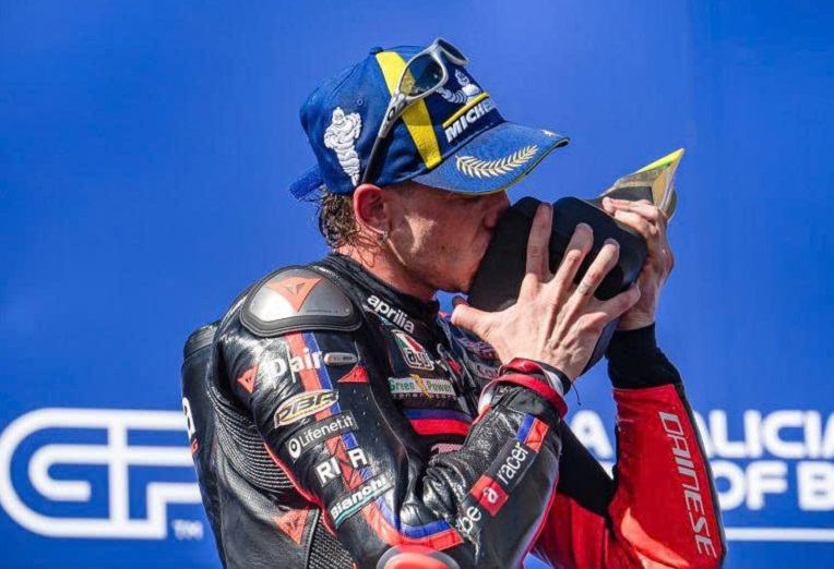 Đối với Aprilia Racing, đây là một ngày trọng đại: chiến thắng thứ 10 tại thể thức MotoGP, chiến thắng thứ 4 liên tiếp và là cú đúp thứ hai của đội đua nhà máy sau thành tích tại Montmeló 2023. Chiến thắng hôm nay cũng nâng tổng số trận thắng của Aprilia tại các giải vô địch thế giới FIM Grand Prix lên con số 304.