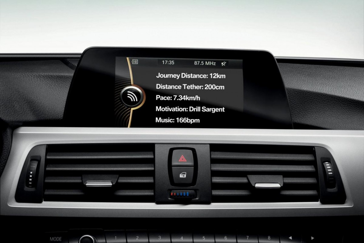 Huấn luyện viên điền kinh “Running Coach” của BMW là một chiếc 3-Series không người lái với một sự kết hợp của công nghệ ConnectedDrive và các camera quan sát xung quanh để cho phép chiếc xe bám theo người đang chạy, ở một khoảng cách an toàn, trong khi vẫn đang di chuyển trên đường.