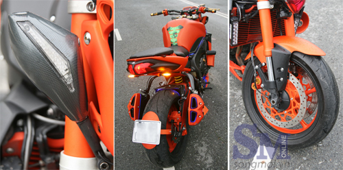 Chủ xe Đặng Huỳnh Minh Hoàng, biệt danh Bin “chùa”, hiện sinh hoạt tại CLB môtô quận 10. Anh cho biết đã độ nhiều mẫu xe khác nhau từ cách đây gần 10 năm. Và sau một vài năm sử dụng chiếc FZ1 này, anh đã mạnh dạn “phá” xe theo sở thích riêng của mình.