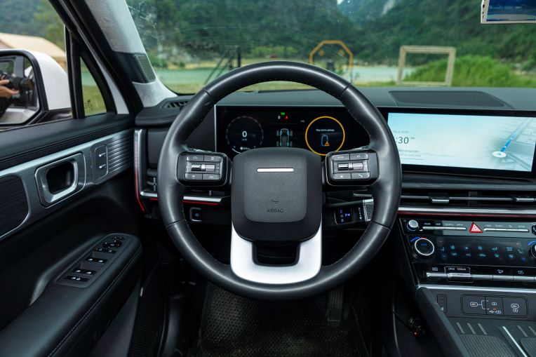 Dù có kích thước lớn, Santa Fe không tạo cảm giác nặng nề khi xoay trở trong phố. Hệ thống camera và cảm biến hỗ trợ phát huy hiệu quả khi lùi xe, quay đầu hay len lỏi qua những đoạn đường hẹp - điều rất thường gặp tại các đô thị lớn.