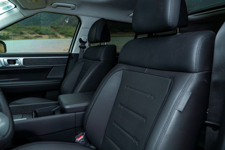 Hàng ghế trước có tư thế ngồi cao, tầm quan sát tốt, ghế lái chỉnh điện giúp người điều khiển dễ tìm được vị trí phù hợp. Các vật liệu sử dụng trong khoang cabin được hoàn thiện chỉn chu, mang lại cảm giác chắc chắn và dễ chịu khi tiếp xúc hàng ngày.