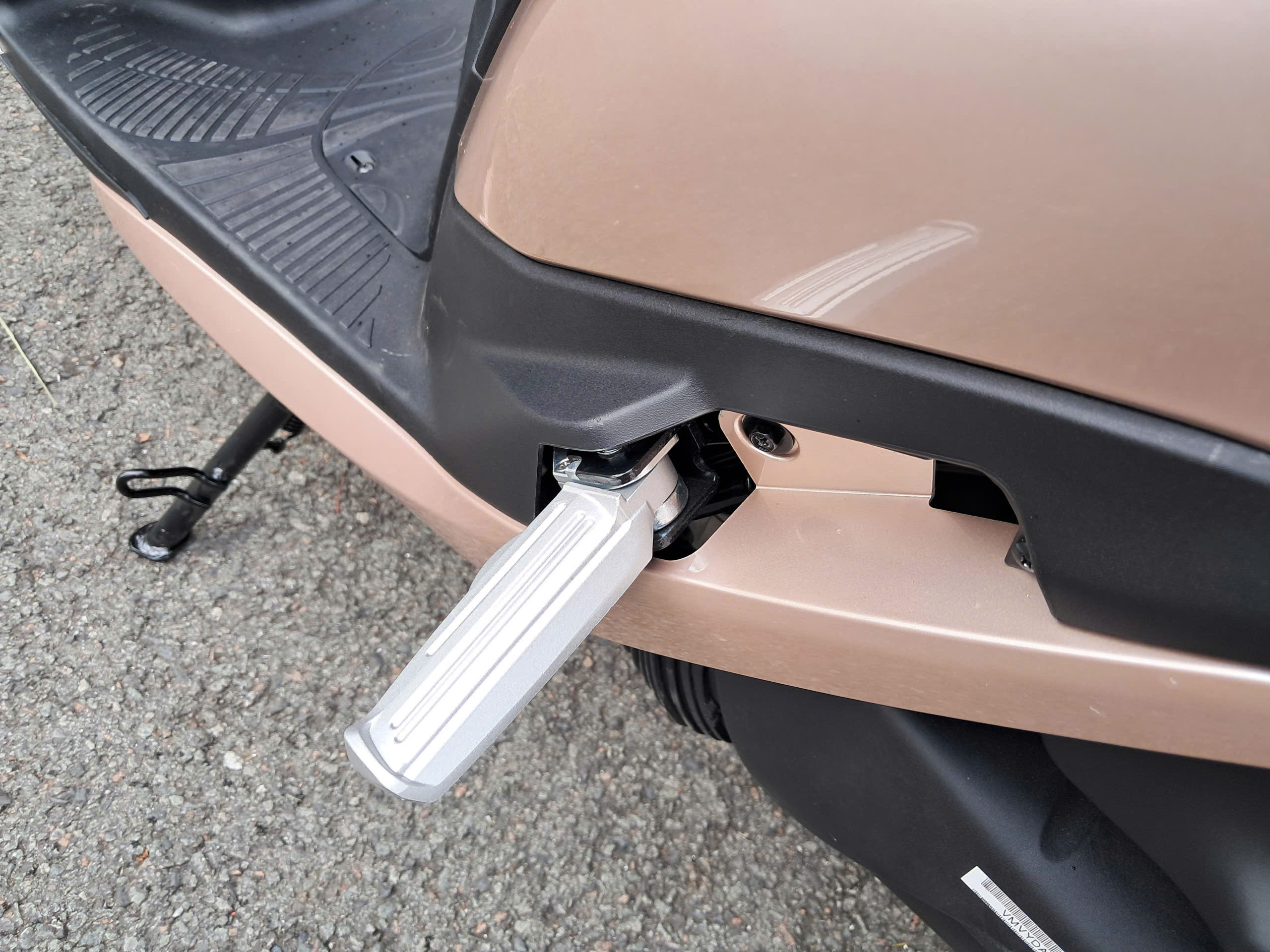 Thanh gác chân cho người ngồi sau có cơ chế ấn bật mở giúp mở thanh gác chân không cần đụng chạm bẩn tay. Cốp dưới yên rộng 23,7 lít, mặt đáy khá lồi lõm nhưng cất được 2 mũ bảo hiểm nửa đầu và nhiều vật dụng cá nhân. Sau các khảo sát thói quen của khách hàng, SYM đã lược bỏ tính năng tắt máy khi dừng xe tạm thời trên mẫu xe TPBW 2025.