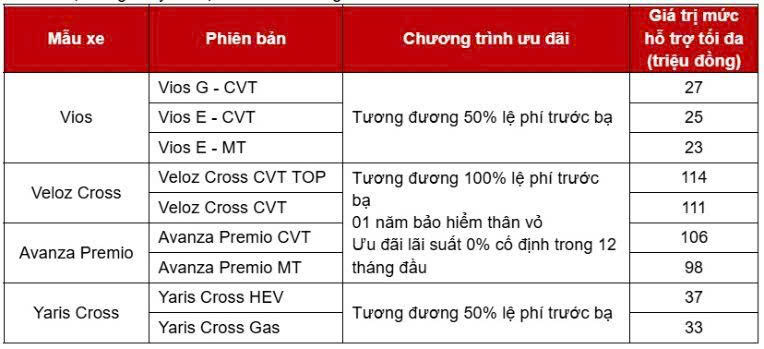 Trong tháng 4/2026, TMV và Công ty Tài chính Toyota Việt Nam (TFSVN), cùng hệ thống các Đại lý Toyota trên toàn quốc triển khai chương trình khuyến mại siêu hấp dẫn dành cho khách hàng. Thông tin chương trình cụ thể như sau: