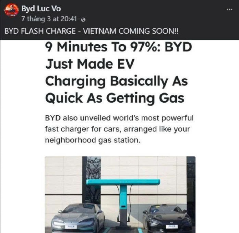 Tuy nhiên, cục diện này có khả năng thay đổi khi những thông tin về việc triển khai hạ tầng sạc từ các thương hiệu quốc tế bắt đầu xuất hiện. Mới đây, đại diện cấp cao của BYD Việt Nam đã hé lộ về kế hoạch đưa công nghệ sạc siêu nhanh mang tên Flash về thị trường trong nước. Dù chưa có thông báo chính thức bằng văn bản từ BYD, nhưng động thái này cho thấy bước đi chiến lược mới, thay vì chỉ tập trung vào việc phân phối sản phẩm như giai đoạn vừa qua.