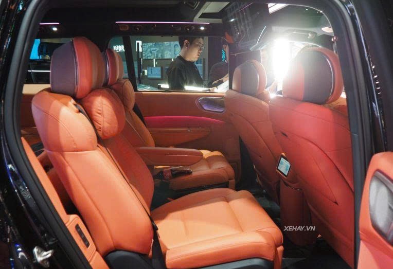 Ngoài ra, người lái còn được hỗ trợ bởi màn hình kính lái AR-HUD, trong khi hành khách phía sau cũng sở hữu màn hình giải trí riêng biệt. Một đặc điểm hiếm gặp trong phân khúc là hàng ghế thứ hai có khả năng trượt linh hoạt và xoay 180 độ, cho phép thiết lập không gian đối diện với hàng ghế cuối để phục vụ nhu cầu làm việc. Sự chú trọng vào tiện nghi còn thể hiện ở hàng ghế thứ ba khi tích hợp tính năng chỉnh điện độ ngả lưng.
