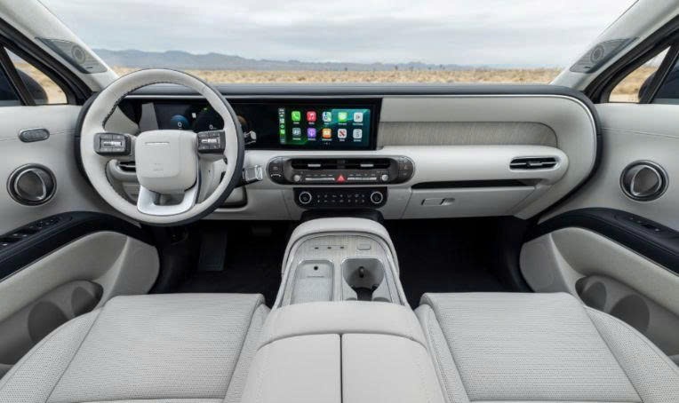 Bên trong khoang lái, Palisade 2026 sở hữu vô lăng thiết kế mới và bảng táp-lô liền khối. Hệ thống hiển thị bao gồm cụm đồng hồ kỹ thuật số nối liền với màn hình trung tâm, cả hai đều có kích thước 12,3 inch. Điểm đáng chú ý trên phiên bản 7 chỗ là hàng ghế giữa được thiết kế theo kiểu thương gia, tích hợp bệ tỳ tay riêng biệt cùng các chức năng chỉnh điện và massage.
