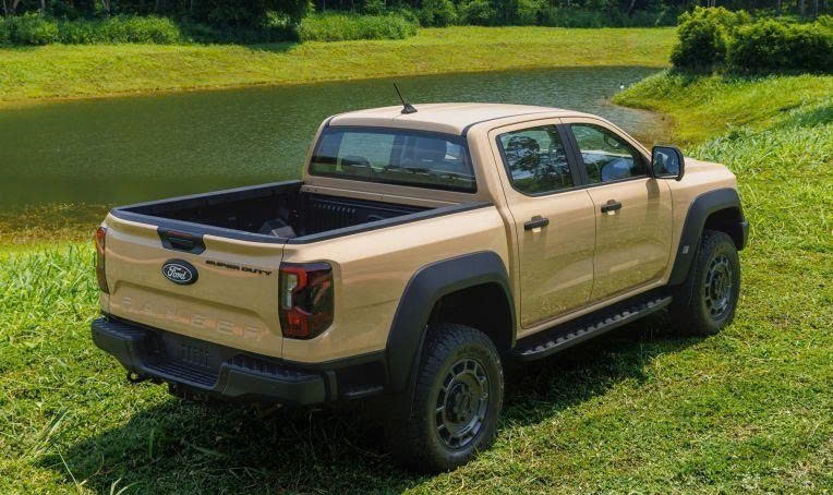 Ngoại thất của Ford Ranger Super Duty mang đậm chất xe công trình với cản trước bằng thép cứng, các móc kéo cỡ lớn và tấm bảo vệ gầm chuyên dụng. Điểm nhận diện đặc trưng là bộ mâm 18 inch sử dụng cấu trúc 8 bu-lông thay vì 6 như thông thường, đi kèm lốp địa hình 33 inch để chịu được áp lực tải lớn. Bên trong khoang lái, Ford vẫn duy trì sự tiện nghi cao cấp với màn hình giải trí 12 inch tích hợp hệ thống SYNC4, ghế da chỉnh điện và hệ thống điều hòa hai vùng độc lập.