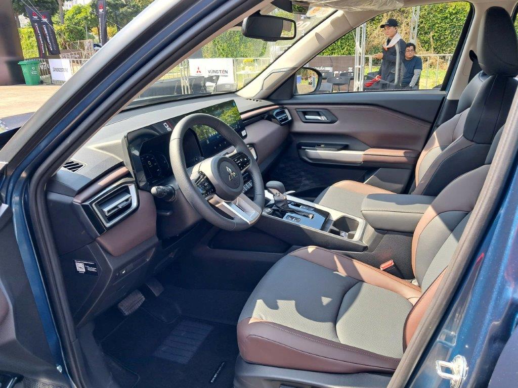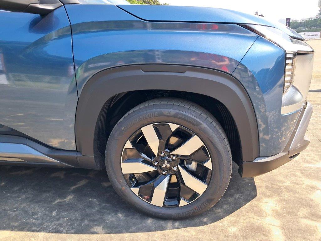 Đầu xe nổi bật với ngôn ngữ thiết kế đặc trưng Dynamic Shield. Lưới tản nhiệt thiết kế đa tầng họa tiết tổ ong được đặt dưới lớp acrylic trong suốt, tích hợp liền mạch với hai bên cản trước tạo nên hiệu ứng thị giác ấn tượng và diện mạo hiện đại. Cụm đèn LED hình chữ T đặc trưng vừa tạo điểm nhấn vừa tăng khả năng nhận diện cho xe. Khoảng sáng gầm xe cao 214 mm (cao hàng đầu trong phân khúc), mâm xe 18inch và góc tới – góc thoát tối ưu, giúp xe dễ dàng vượt qua các chướng ngại vật.