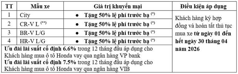 Nhằm gia tăng sức cạnh tranh và mang đến cơ hội sở hữu xe cho người ùng trong quý II/2026, Honda Việt Nam (HVN) cùng hệ thống nhà phân phối vừa công bố chương trình khuyến mại lớn áp dụng từ ngày 1/4 đến hết ngày 30/4/2026.