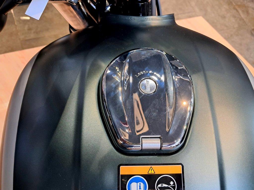 Bình xăng có ổ khóa riêng với nắp che lớn mạ crôm tăng tính thẩm mỹ và tương tự các mẫu môtô phân khối lớn cao cấp hơn.