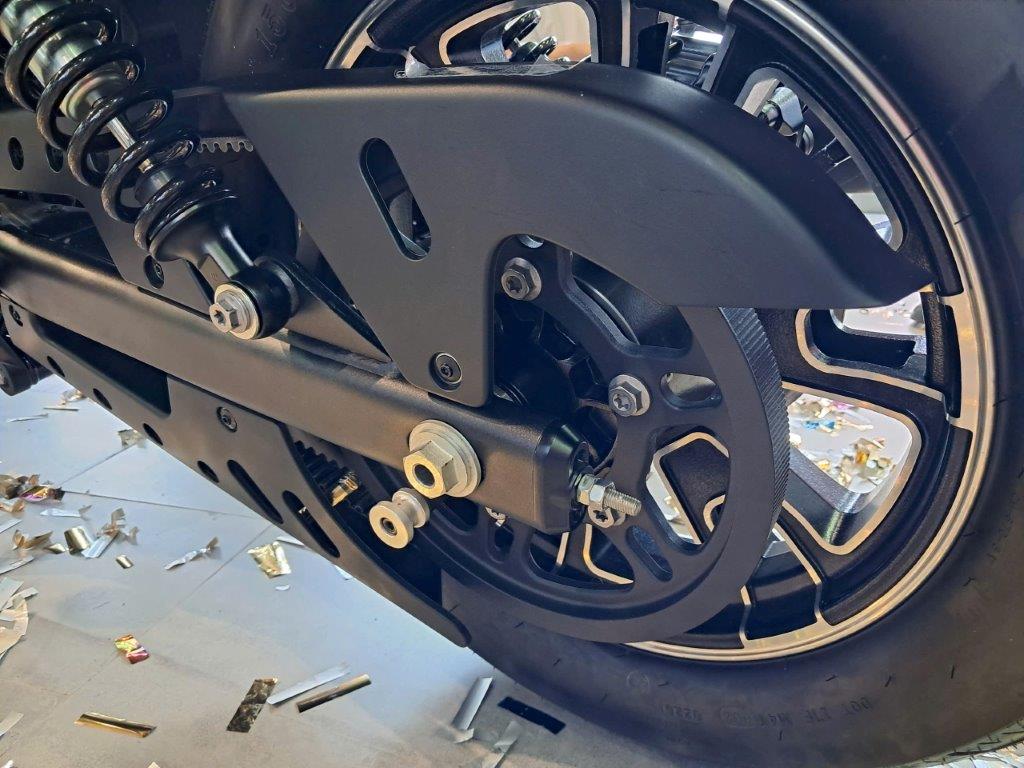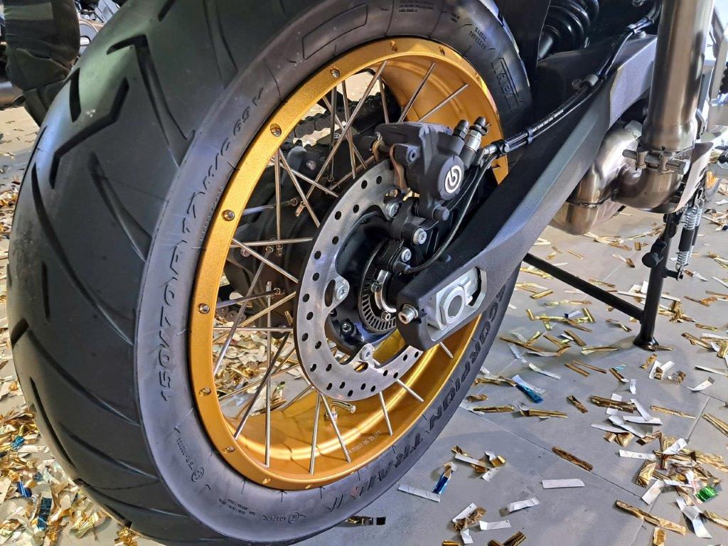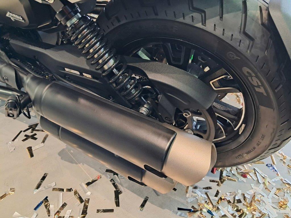 Yên xe cao 734mm phù hợp cho các tay lái có chiều cao từ 1m60. Khoảng sáng gầm xe 160mm hạn chế cạ gầm trên đường lồi lõm. Phuộc trước dạng giảm xóc đôi, hành trình ngược Upside-down. Nhún sau dạng giảm xóc đơn đặt bên hông. Cỡ lốp trước 130/90R16 và sau 150/80R16. Màn hình ODO TFT hiển thị đầy đủ thông số, giảm chói nắng.