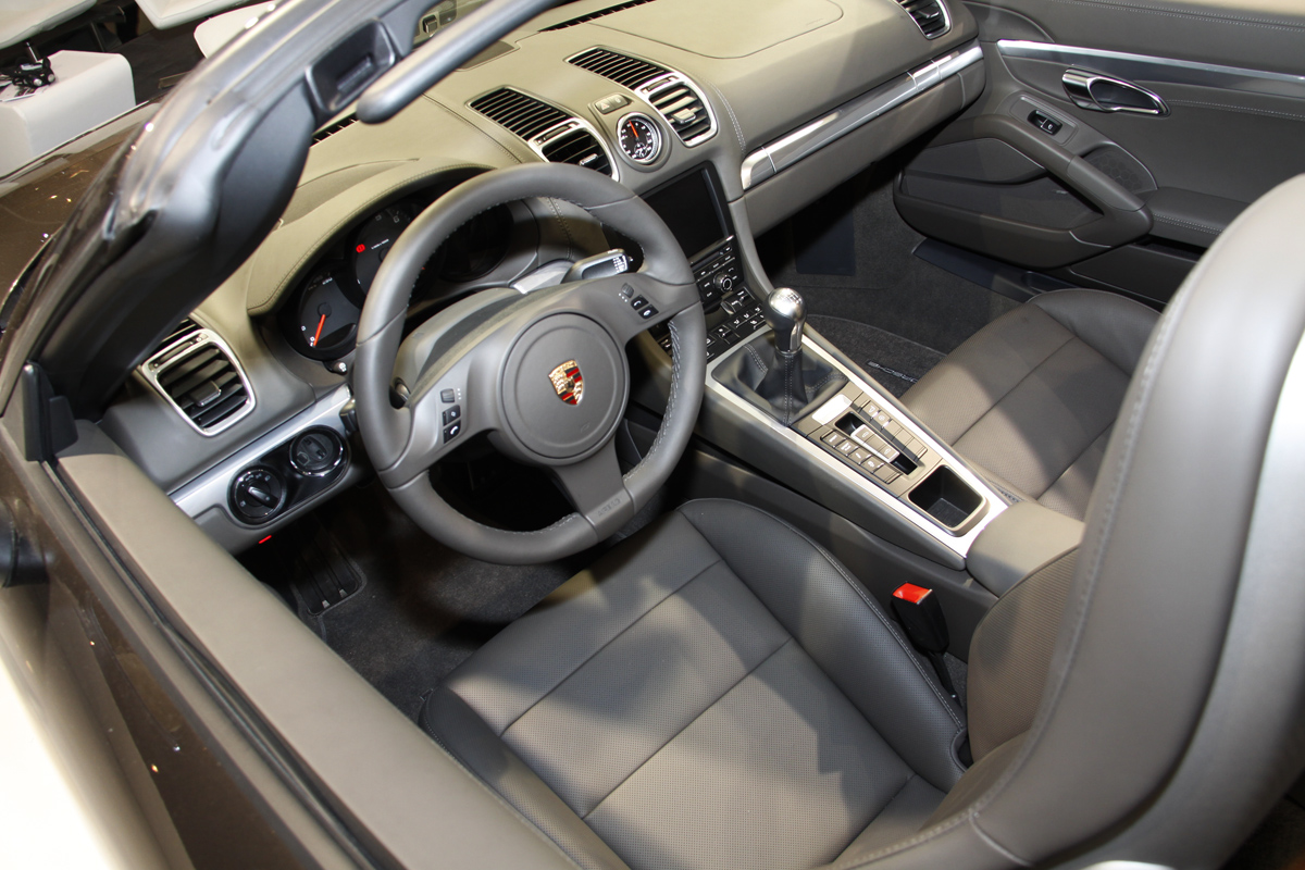 Nội thất của Boxster được thiết kế lại hoàn toàn nhưng các chức năng vẫn quen thuộc đối với người lái xe Porsche. Chức năng, bố trí khoa học và thoải mái là những mục tiêu phát triển đã được thực hiện. Kết quả là một thiết kế nội thất mới và hiện đại, với các đường nét rõ ràng, ảnh hưởng từ siêu xe thể thao Carrera GT kinh điển. Bảng điều khiển trung tâm dốc lên phía trước theo phong cách xe đua với cần số cũng dốc lên tạo cảm giác thậm chí gần hơn với xe cho người lái. Một trong những đặc điểm nổi bật khác của Boxster mới là mui xếp mềm thiết kế mới có thể đóng hoặc mở chỉ mất 9 giây và vận hành ngay khi xe chạy ở vận tốc lên đến 50km/h, đồng thời khả năng cách âm của mui cũng được cải thiện đáng kể.