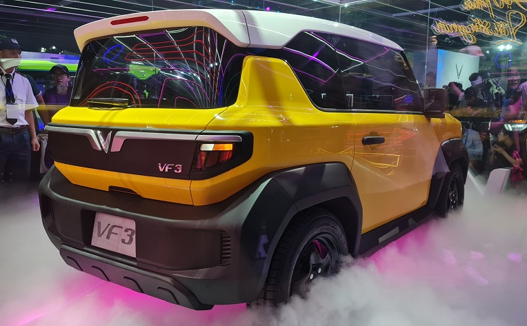 Chỉ sau một tháng công bố, mẫu xe mini car VF 3 lần đầu tiên đã xuất hiện, trở thành tâm điểm của triển lãm. Xe có thiết kế nhỏ gọn, phù hợp với không gian vận hành trong đô thị đông đúc. VF 3 dễ làm vừa lòng những bà nội trợ hiện đại hay đưa đón con đi học hoặc những cô gái thế hệ GenZ thích sống xanh lựa chọn đi làm vì tiện lợi. Hiện tại, VinFast chưa công bố giá bán VF 3, nhưng đã khiến người dùng đưa ra so sánh với chiếc Wuling (có giá 239- 282 triệu đồng) cũng vừa ra mắt thị trường Việt Nam tuần trước.