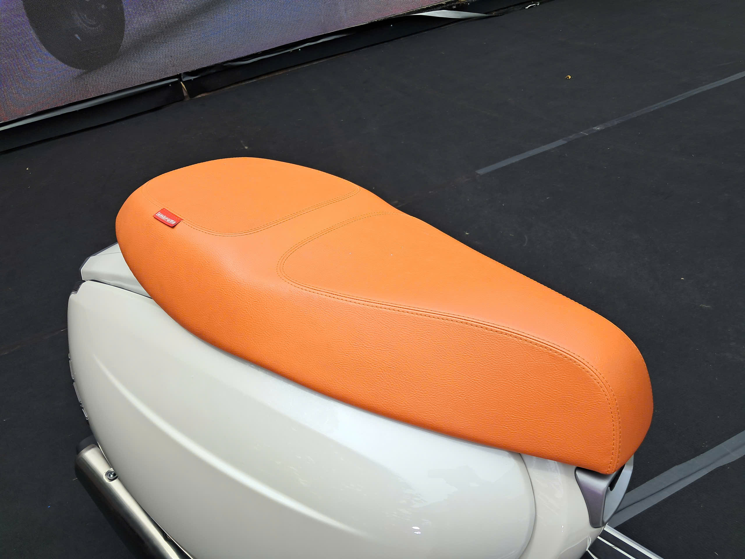 Xe còn nổi bật nét thời trang nhờ yên ngồi bọc da, gắn logo Lambretta.