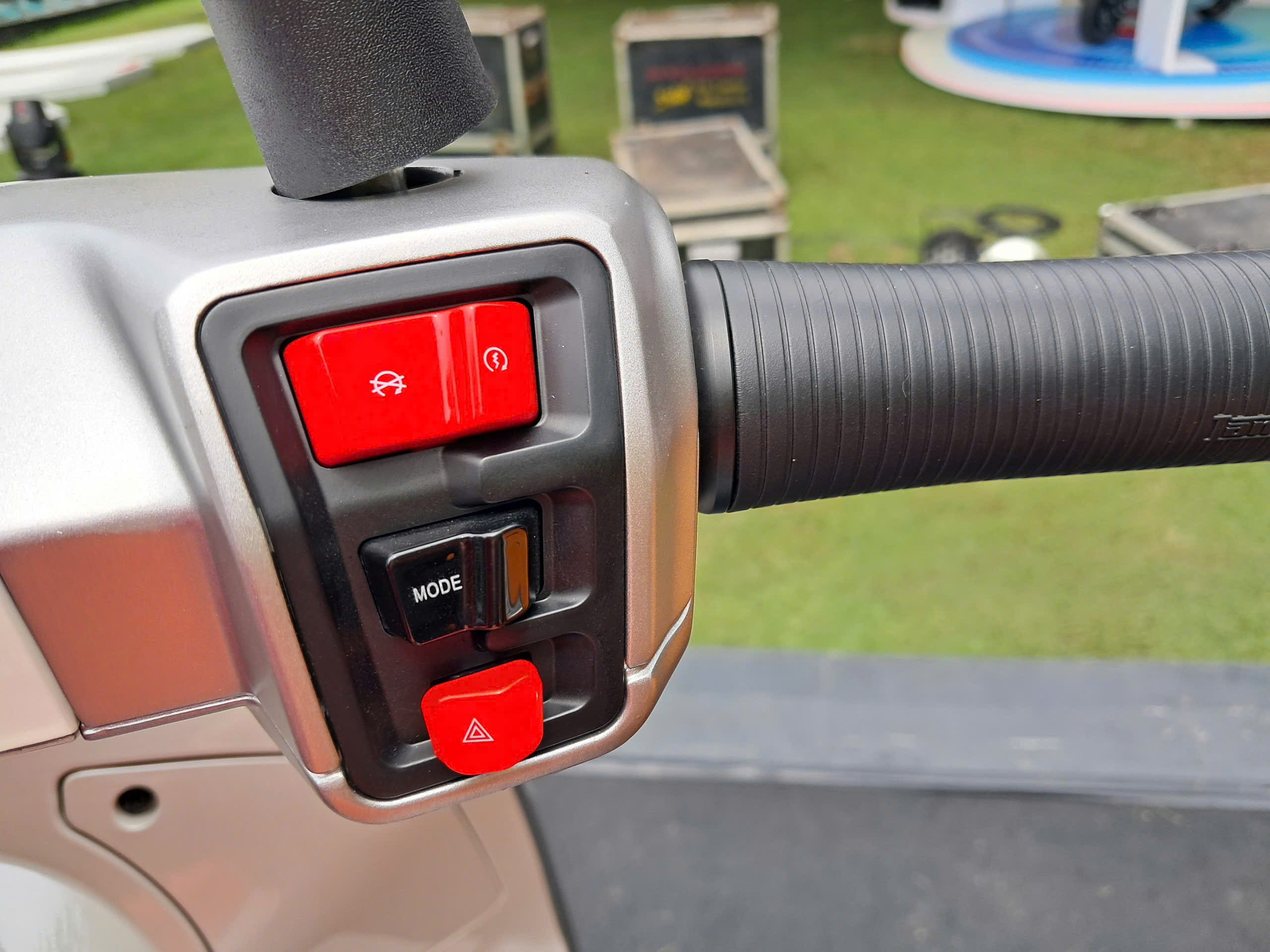 Tay lái bên phải có nút tắt nguồn khẩn cấp và nút Mode tiện dụng chọn chỉnh các tính năng trên xe.