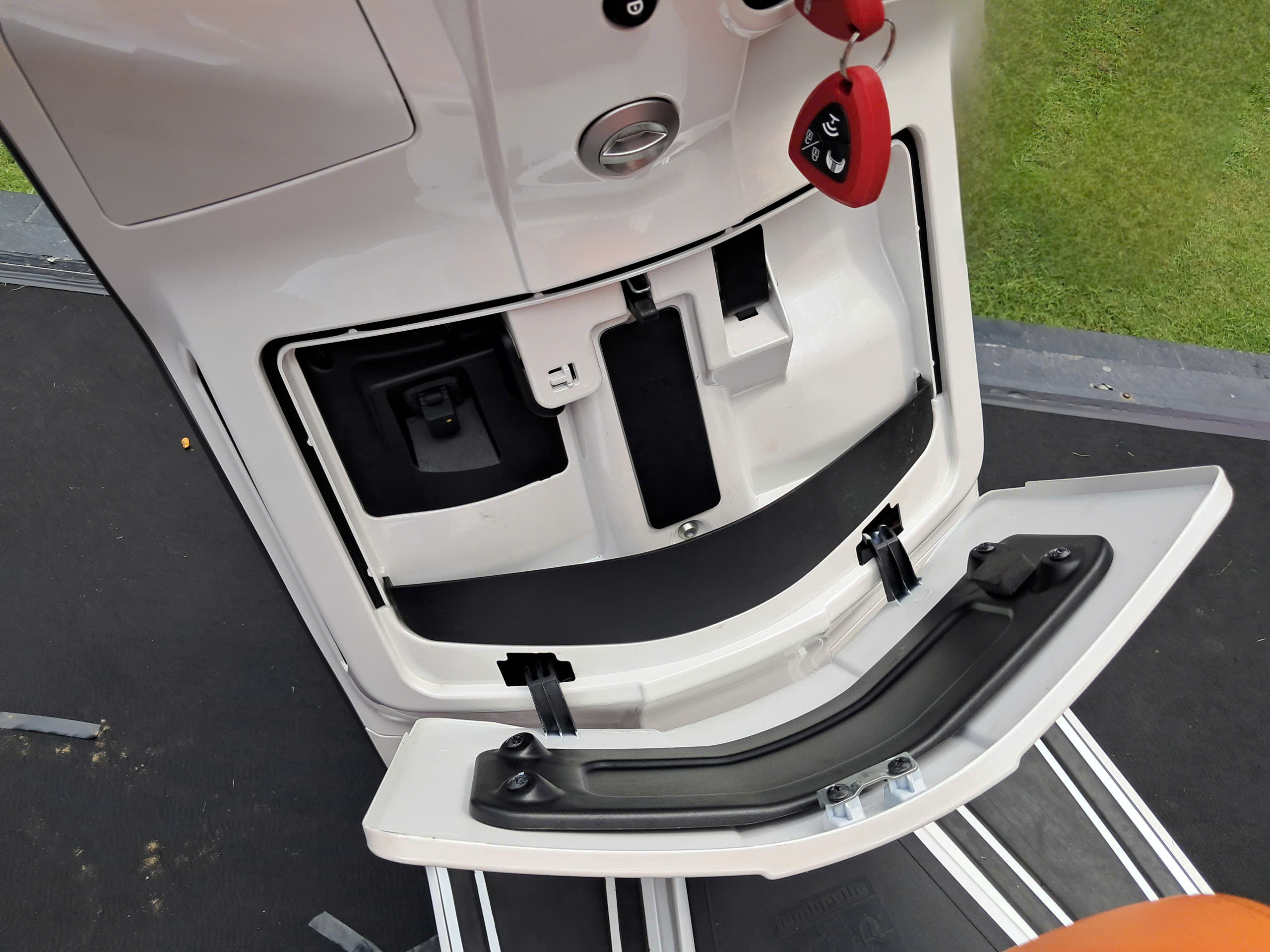 Bộ phận làm mát, điều hướng luồng gió nóng thông qua các khe thoát nhiệt thấp ở hai bên sườn xe, không hướng vào người lái. Nhiều cổng sạc USB, gồm cổng kèm khay đựng điện thoại ở yếm chắn gió, cổng sạc dưới yên xe.
