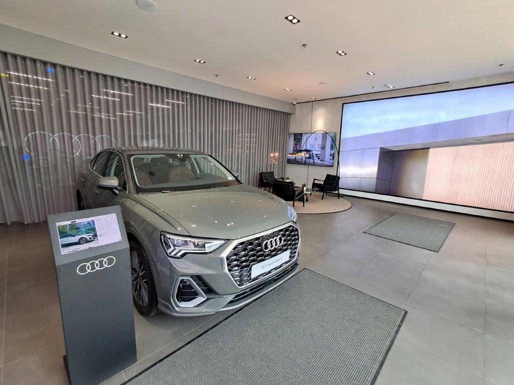 Đáng chú ý, thay cho quầy tiếp đón truyền thống, khách hàng được nhân viên gặp gỡ tại bàn tiếp đón thiết kế mở rộng, nhằm mang lại cảm giác thân thiện và thoải mái ngay từ khoảnh khắc đầu tiên bước vào showroom. Các khu vực tư vấn cũng đặt ngay không gian trưng bày, với nội thất cao cấp và hệ thống ánh sáng phong cách châu Âu. Các màn hình video hiện diện khắp showroom giúp chuyên viên Audi minh họa cho khách hàng hiệu quả hơn.
