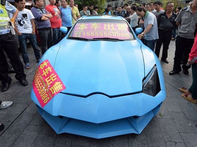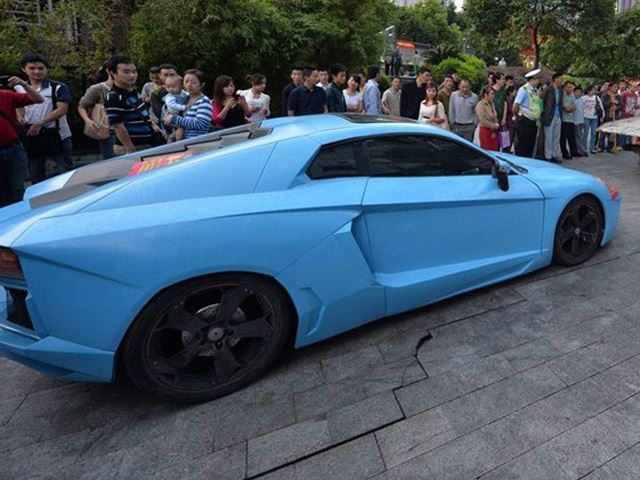Có vẻ như chuyện một nhân tài trong đám "con dân" ở Trung Quốc dám chế tạo những siêu xe bản sao của Lamborghini hay Bugati, Ferrari chẳng còn gì lạ. Nói chung là dư luận rất hoan nghênh, với cái kiểu như là một câu chuyện vui vẻ, biết để xem và cười cợt.. Cho dù đó là một anh thợ cắt tóc chế ra Bugati từ tôn vụn, hay một anh chàng mới đây bỏ công "cắt dán" một chiếc Hyundai cũ lên thành Lamborghini Aventador màu xanh da trời, thì đó cũng như là một chuyện để cười vui.