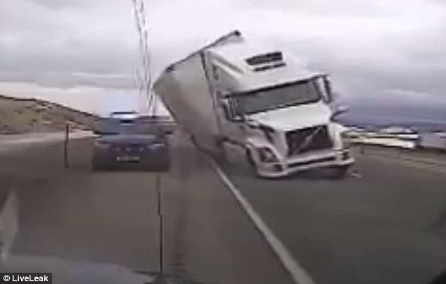 Thót tim xem xe tải lật nhào vì gió thổi