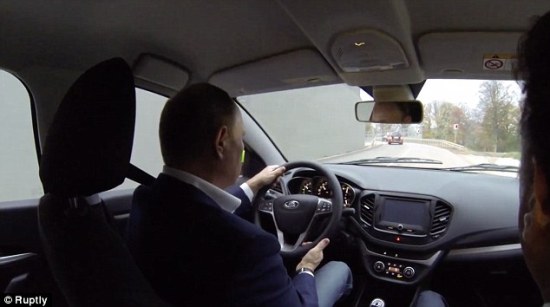 Ngồi cùng xe với Tổng thống Putin trên chiếc xe mới màu xanh còn có CEO AvtoVAZ Bo Andersson, hãng sản xuất ôtô lớn nhất nước Nga, chế tạo dòng xe giá rẻ Lada Vesta.