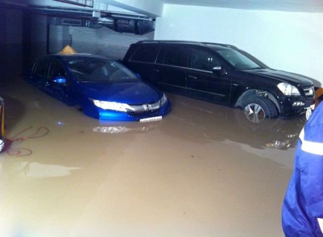 Hơn 20 ôtô bị ngập nặng trong một tầng hầm để xe ở Sài Gòn sau trận mưa lớn hôm 16/9