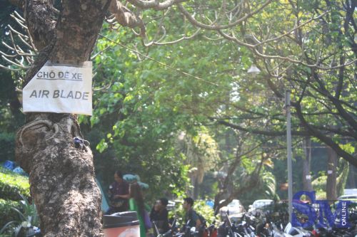 Trên các thân cây đều được dán thông báo khu vực dành cho từng loại xe.