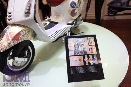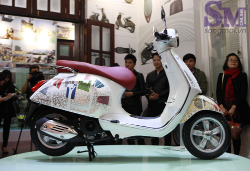 Chiếc scooter thay thế cho Vespa LX do Piaggio Việt Nam sản xuất nổi bật hơn nhờ sở hữu lớp vỏ như một bức tranh sơn mài kết hợp nghệ thuật dát vàng. Đây là một sản phẩm do nữ họa sĩ người dân tộc thiểu số đóng góp vào bộ sưu tập xe nghệ thuật trong “ngôi nhà Ý”.