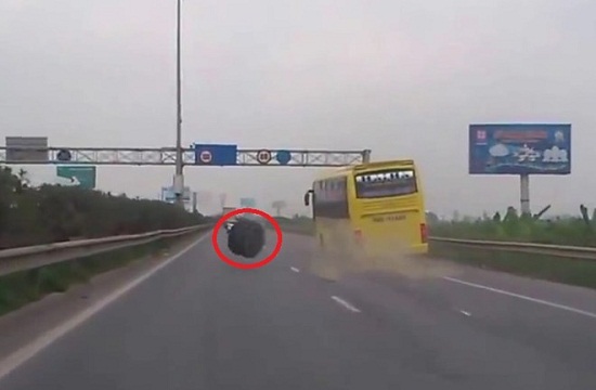 Kinh hoàng xe giường nằm văng bánh ở tốc độ cao
