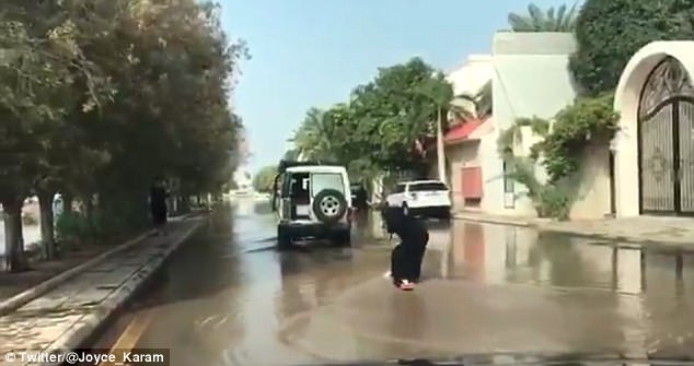 Những trận mưa lớn kéo dài khiến nhiều con đường ở Ả-rập Xê-út ngập trong biển nước nhưng điều đó không làm nao núng tinh thần của những con người đam mê thể thao.