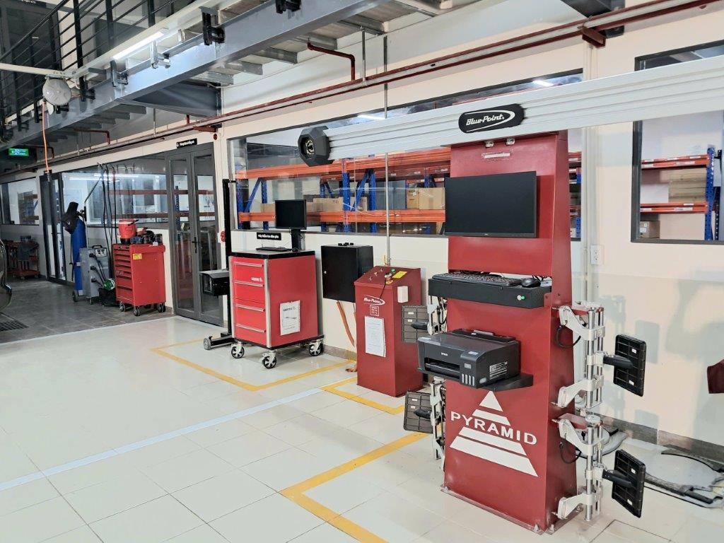 Bên cạnh đó, nhà phân phối Mitsubishi Motors Ôtô Trường Chinh – Chi nhánh Xuyên Á còn trang bị 10 khoang đồng sơn hiện đại với máy kéo nắn thân vỏ thế hệ mới giúp phục hồi khung gầm các dòng xe cao cấp nhập khẩu, 9 khoang sửa chữa chung với thiết bị cân chỉnh góc lái, kiểm tra lực phanh, đèn pha… công suất hơn 100 lượt xe mỗi ngày.