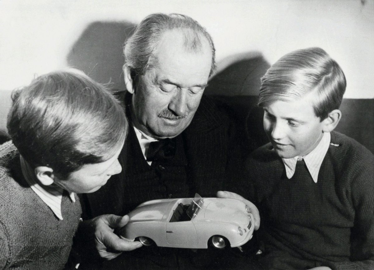 Ông tổ Porsche với hai cháu nội ngoại, F.A Porsche ảnh trái