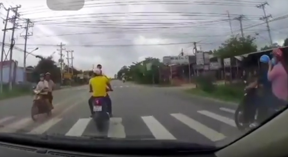 Các hình ảnh quay lại từ camera hành trình cho thấy hai chiếc xe máy đang đi song song trên đoạn đường khá vắng, trong đó có một xe lưu thông ở làn ôtô.