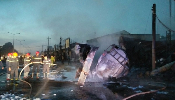 Xe bồn mất lái lao qua dải phân cách rồi tông vào cột điện và bốc cháy. Xăng tràn ra đường khiến đám cháy lan sang 19 nhà dân gần đó. Hậu quả, nhiều gia đình vẫn đang ngủ nên không kịp phản ứng, 6 người đã tử vong tại chỗ, 2 người khác bị thương. Phải sau một giờ đồng hồ, đám cháy mới được khống chế, cả xe bồn và nhiều căn nhà lân cận đều bị thiêu rụi.