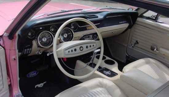 Một chiếc Ford Mustang 1968 theo phong cách “Điệp vụ báo hồng” – Mustang Pink dành cho fan của dòng xe cơ bắp Mỹ thập niên 60, 70 của thế kỷ trước. Xe trang bị hộp số tự động cùng động cơ V8 công suất 200 mã lực.