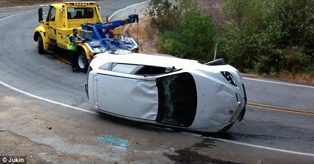 Theo Daily Mail, vụ việc xảy ở trên một đoạn đường ở California, Mỹ khi một chiếc xe cứu hộ được gọi đến để “cứu” xe Mazda màu trắng gặp tai nạn đang nằm nghiêng bên lề đường.
