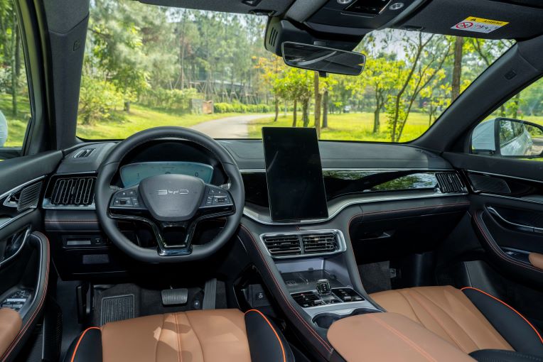 Có kích thước lớn nhất phân khúc giúp xe có dáng vẻ bề thế, vững chãi và không gian nội thất rộng rãi. Mặt táp-lô được cho là đơn giản, cổ điển, tạo sự chuyển tiếp “thân thuộc” cho những người dùng xe xăng sang xe điện. Xe sở hữu màn hình trung tâm 15,6 inch xoay thông minh hỗ trợ kết nối Apple CarPlay và Android Auto không dây, điều khiển bằng giọng nói tiếng Việt, ứng dụng quản lý và điều khiển xe từ xa BYD APP, 2 vị trí sạc không dây 15W, camera toàn cảnh tích hợp tính năng nhìn xuyên gầm, hệ thống âm thanh Infinity 10 loa...