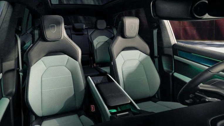 Bên trong khoang lái, hãng xe Đức giới thiệu gói nội thất Style Package mới với tông màu xanh-đen chủ đạo, đồng bộ với màu sơn ngoại thất Mystic Green. Các điểm nhấn màu xanh xuất hiện tinh tế trên bảng táp-lô, vô-lăng và táp-bi cửa, tạo nên không gian cabin hiện đại và khác biệt. Xe vẫn duy trì cấu trúc nội thất kỹ thuật số đặc trưng của dòng Cayenne thế hệ mới với sự tập trung tối đa vào người lái.